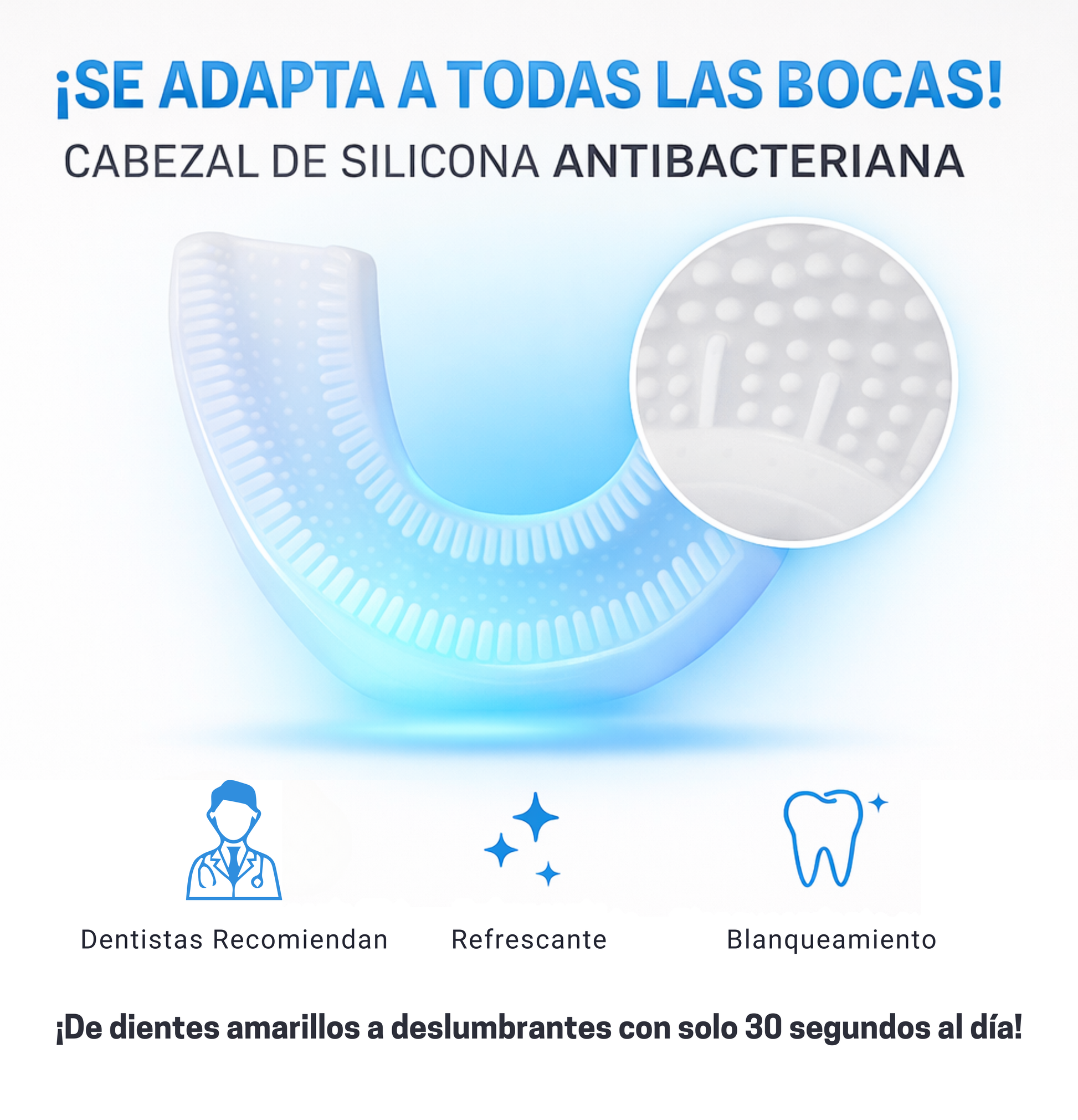Después de cada uso, simplemente enjuaga el cabezal de silicona con agua tibia. Para una limpieza profunda, puedes retirar el cabezal y lavarlo con jabón suave una vez a la semana. Al ser silicona antibacteriana, resiste la acumulación de suciedad y se mantiene siempre fresco.